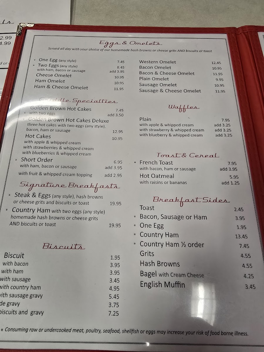 The food complements the diner’s cozy, unpretentious vibe perfectly: generous portions presented with a focus on flavor and tradition rather than fuss. Meals are suited for casual dining occasions—whether grabbing a satisfying breakfast, enjoying a relaxed lunch, or stopping by for daily specials that often include Southern Fried Chicken and country ham dishes. The easygoing setting and familiar flavors make it a place where people linger comfortably, appreciating the straightforward good food and warm hospitality.